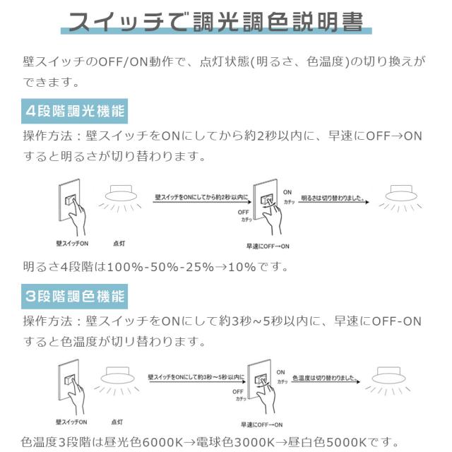 ★光の色と明るさが調節できます。調光器が無くても、元の壁スイッチで光の色と明るさを変えられるから、暮らしのシーンやお部屋に合わせて手軽にあかりの切り替えが出来ます。