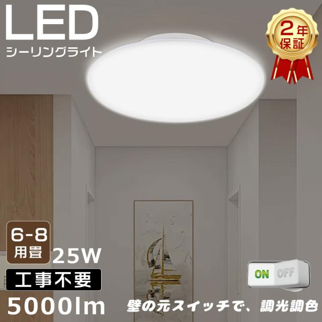 小型シーリングライト おしゃれ シーリングライト 調光調色 LEDシーリングライト 6畳 ミニシーリングライト LED 250W相当 ダウンライト 250φ LED照明器具 8畳 薄型 壁スイッチ 4段階調光 3段階調色 消費電力25W 5000LM LED照明器具 玄関 廊下 工事不要 簡単取付