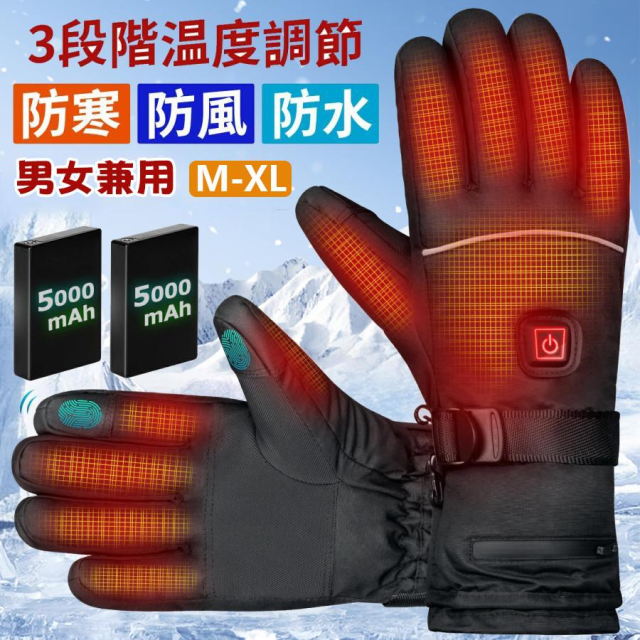 5000mAhバッテリー付き電熱グローブ バイク 電熱手袋 usb充電式 電熱ヒーター手袋 ワークマン 3段階温度調整 スマホ対応 防寒対策 寒さ対策 スキー 通勤 アウトドア 作業 男女兼用
