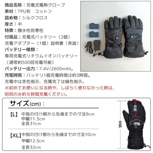 - バイクのチョイ乗りツーリングの為に電熱グローブを初めて購入しました。サイズはMサイズでピッタリ。 因みにゴルフ用グローブは23cmでピッタリの手です。室内で試着、強にすると『あったかぁーい』と感じます。 気温5℃くらいの日に2時間程バイクで走りました。この場合は強で使用しても気温で相殺される感じです。 但し、普段使いのグローブに比較すると随分と暖かいです。ただ、親指の先だけは両手とも冷たさでしびれる感じになりました。あと、ライダースジャケットの袖口がグローブの中に収まってくれたら良いのですが、グローブがイマイチ狭くて納まりません。グローブ自体が厚手の為クラッチレバー&ブレーキレバーが操作しにくいです。