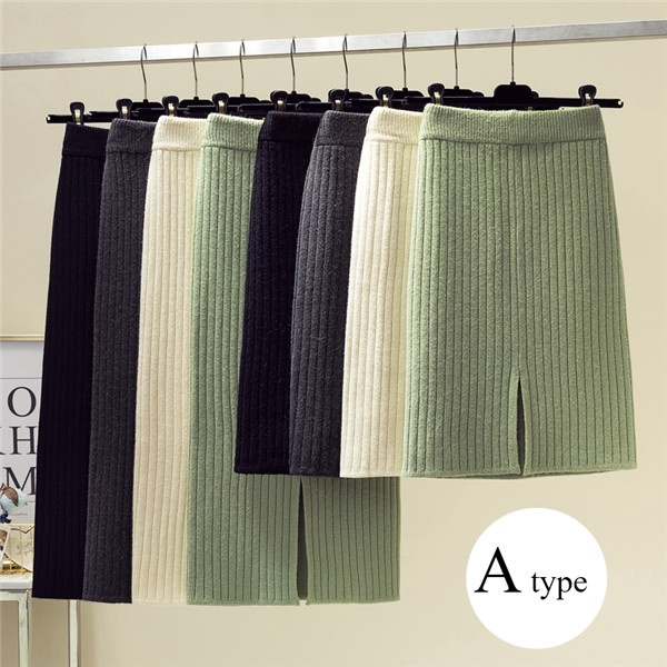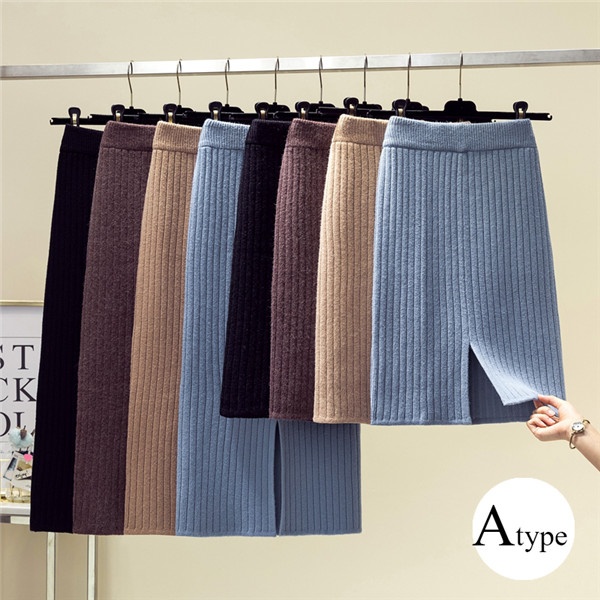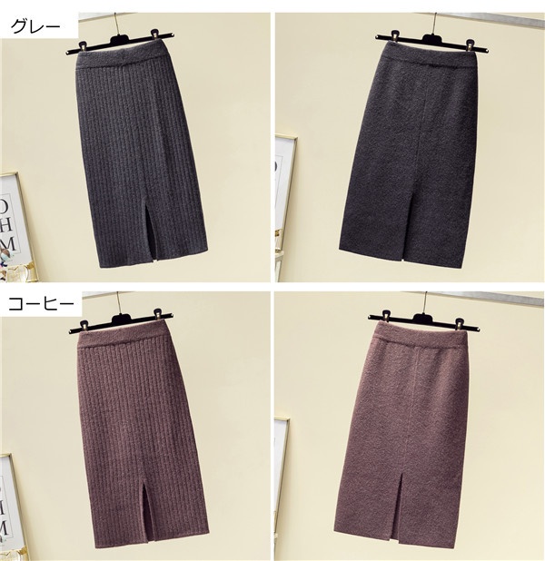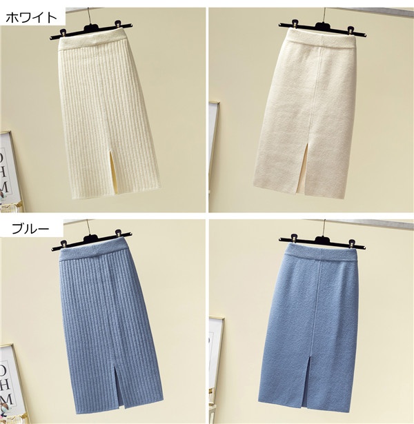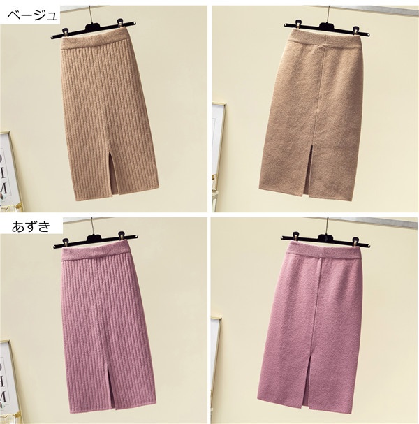 スリットニットスカート ニットスカート バックスリット 秋冬 タイト 2タイプ 5分丈 7分丈 9分丈 リブニット ストレッチ タイトスカート ニット スカート ボトムス レディースdd084l6l6m5
