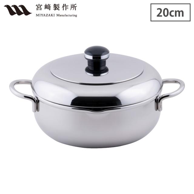 オブジェ ザ・テンプラ 天ぷら鍋 両手鍋 20cm 2.2L ガス火 IH対応 蓋付き 油よけフード ステンレス 宮崎製作所 Objet OJ-44【 てんぷら鍋 揚げ鍋 丸型 フタ 揚げ物調理 鍋 IH 全面鉄芯三層鋼 日本製 】