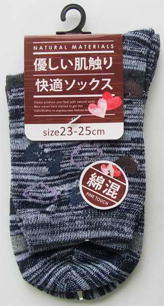靴下 婦人 綿混引き揃え柄入ソックス 23~25cm [色柄指定不可] (100円ショップ 100円均一 100均一 100均)