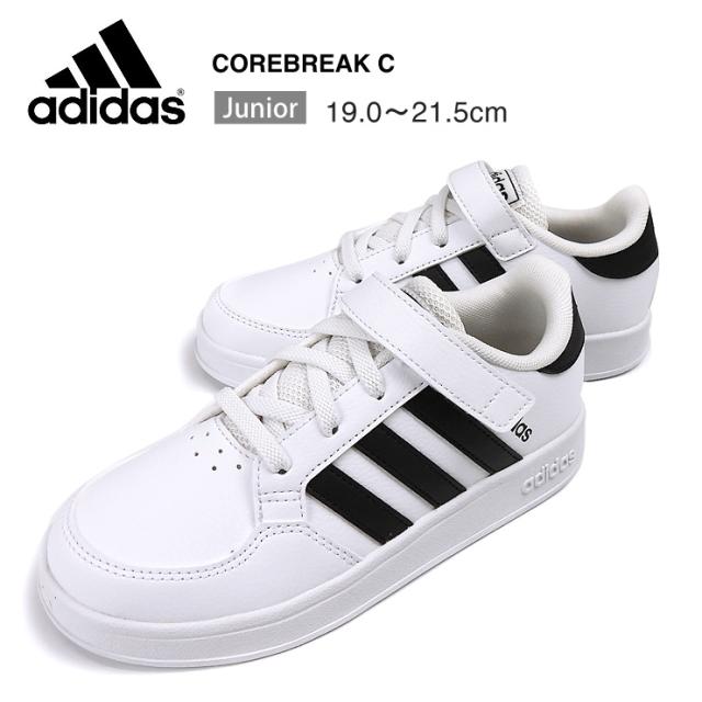 【箱アウトレット】adidas COREBREAK C ローカット スニーカー シューズ キッズ・ジュニア 19 20 21 21.5 アディダス コアブレイク FZ0106 子ども 子供 男児 男の子 女児 女の子 ベルクロ マジックテープ 面ファスナー ゴム紐 運動靴 白 ホワイト sh2023