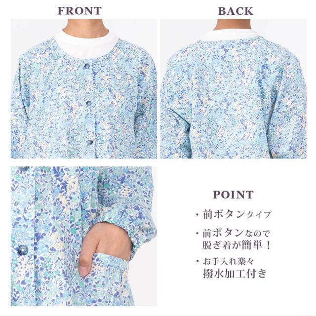 LIBERTY リバティ エプロン レディース スモック 割烹着 前ボタン 撥水加工 はっ水 保育士 ワンピース フラワー 草花 ボタニカル プリント 母の日 ギフト プレゼント 綿 コットン カフェ キッチン 花柄 総柄 ジョアンナ・ルイーズ 保育園 幼稚園 花屋 ラッピング無料 outfit