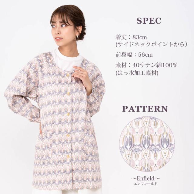 LIBERTY リバティ エプロン レディース スモック 割烹着 前ボタン 撥水加工 はっ水 保育士 ワンピース フラワー 草花 ボタニカル プリント 母の日 ギフト プレゼント 綿 コットン カフェ キッチン 花柄 総柄 エンフィールド 保育園 幼稚園 花屋 ラッピング無料 outfit
