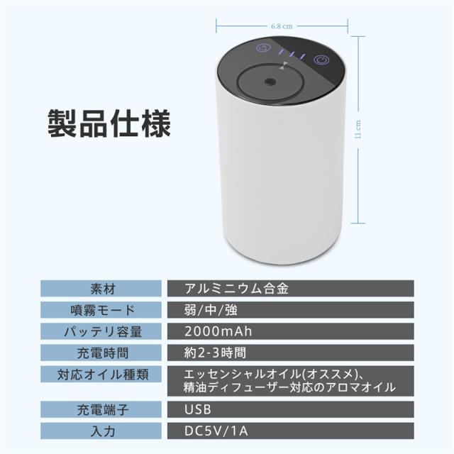 部屋 玄関 寝室 オフィス 漏れ防止 軽量 コンパクト 好きな場所で使える 車用 アロマ 消臭剤 小型 静音 おしゃれ 長時間 父の日 プレゼント ギフト 水を使わない