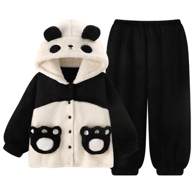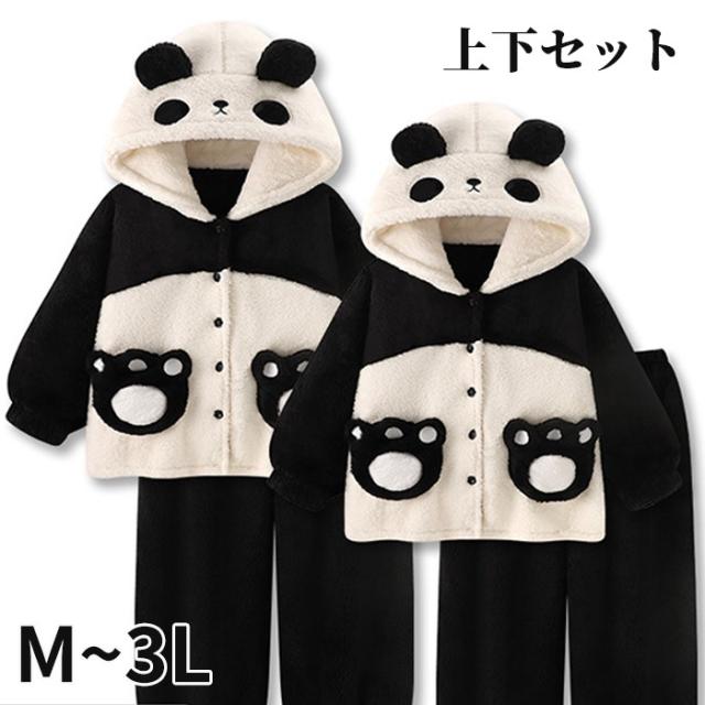 ペアルック ルームウェア もこもこ パジャマ パンダ レディース メンズ 上下セット 冬 長袖 暖かい あったか ペアパジャマ 前開き カップル セットアップ 防寒対策 部屋着 寝巻き 秋 冬用 プレゼント