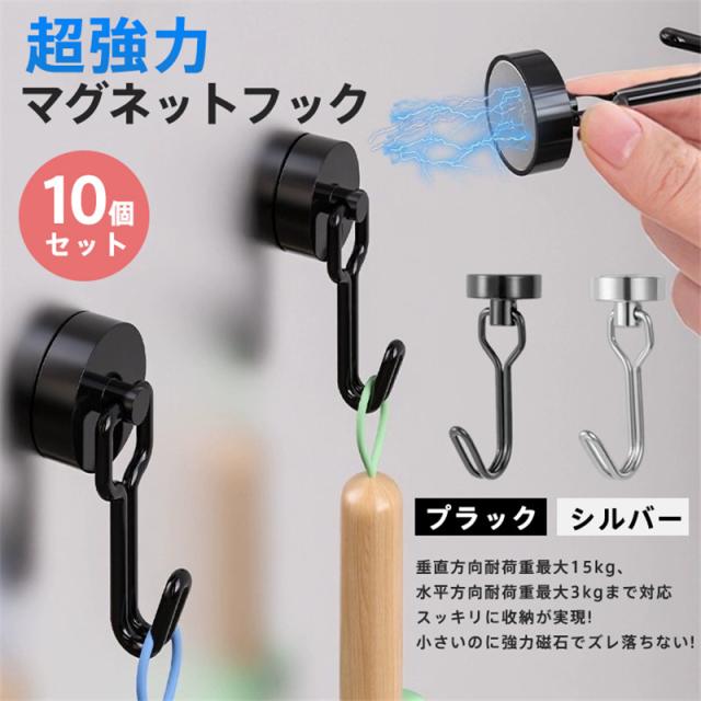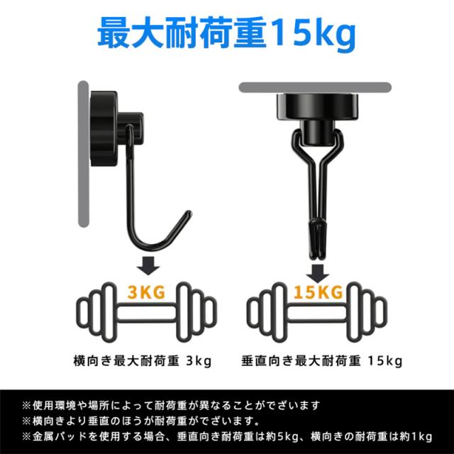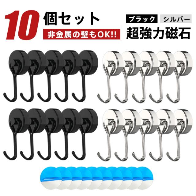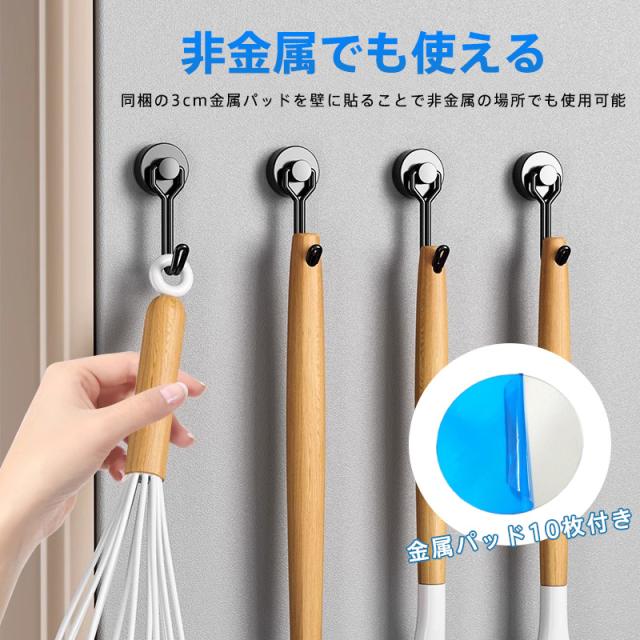 マグネットフック 超強力 マグネット 金属製保護パッド付き 10個セット 磁石 ステンレス製 防錆 垂直向き最大耐荷15kg キッ