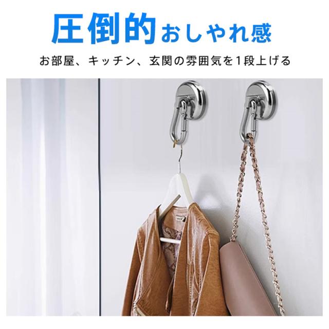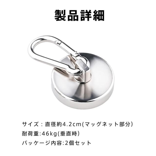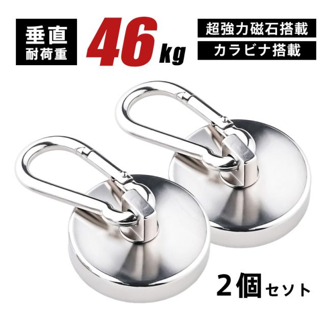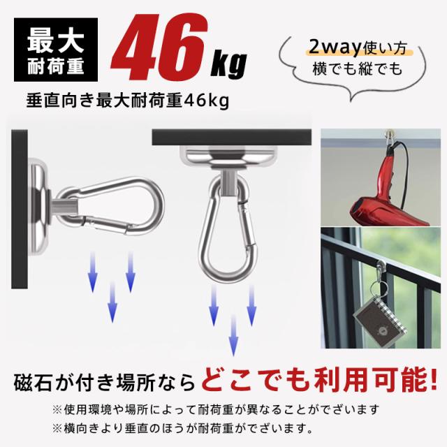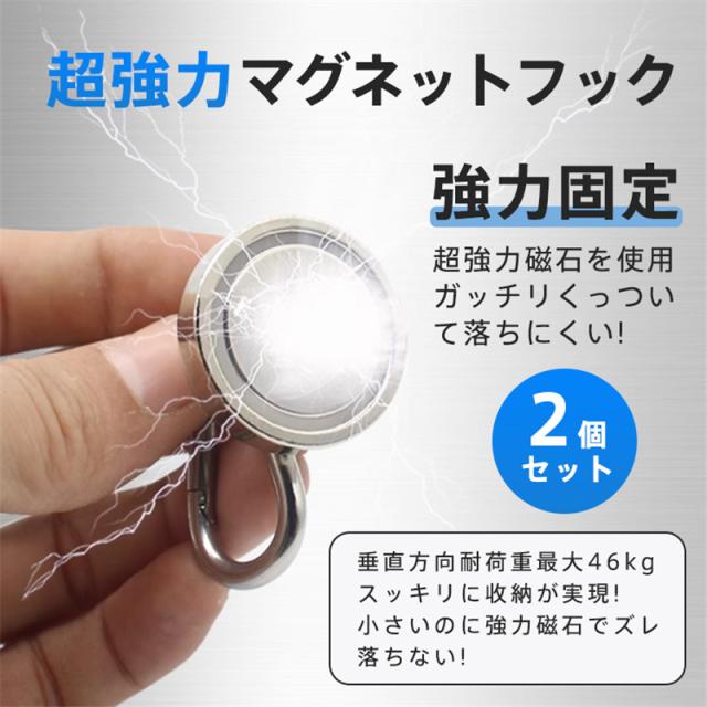 マグネットフック 超強力 磁石 2個セット 吊り下げ 垂直耐荷重46kg 防錆 フック キッチン 冷蔵庫 倉庫 屋外 お風呂 壁掛