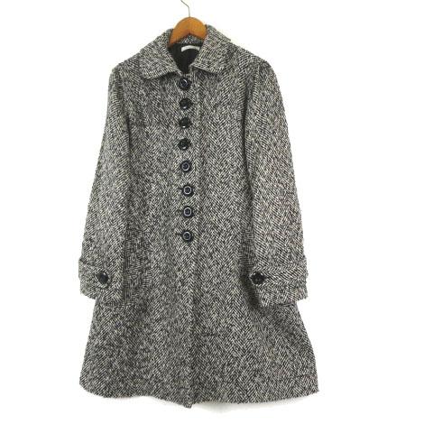 【中古】La Pasteque パスティーク コート ヘリンボーン柄 ツイード ウール M 黒 ブラック オフ白 アイボリー