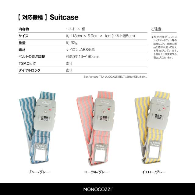 スーツケースベルト 旅行 便利グッズ スーツケース 荷物 固定 TSAロック 付き ベルト ダイヤルロック 鍵付き TSA 頑丈 バンド [ suitcase 対応 ] MONOCOZZI Bon Voyage TSA LUGGAGE BELT