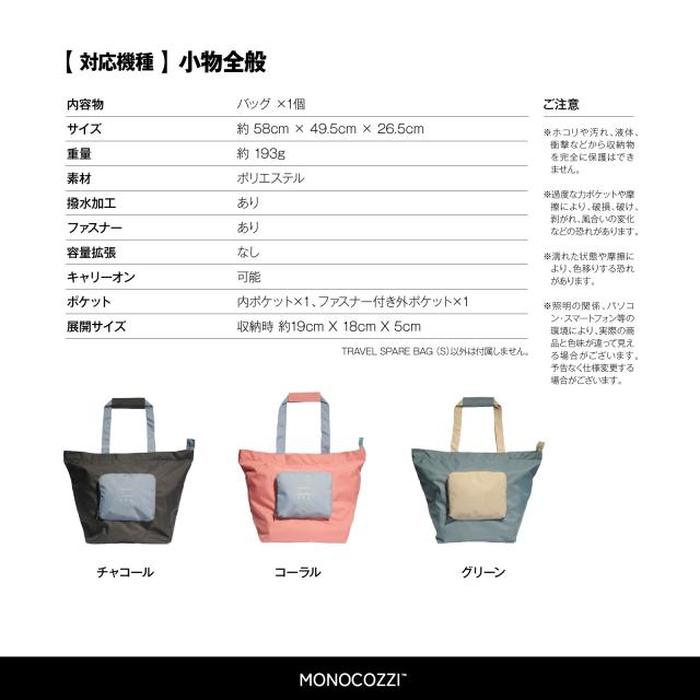 一泊二日 A4 バッグ 旅行 便利グッズ レディース メンズ 大容量 収納 キャリーオン 機能 軽量 トートバッグ ナイロン 無地 おしゃれ ジム マザーズ バッグ [ 対応 ] MONOCOZZI Bon Voyage TRAVEL SPARE BAG S