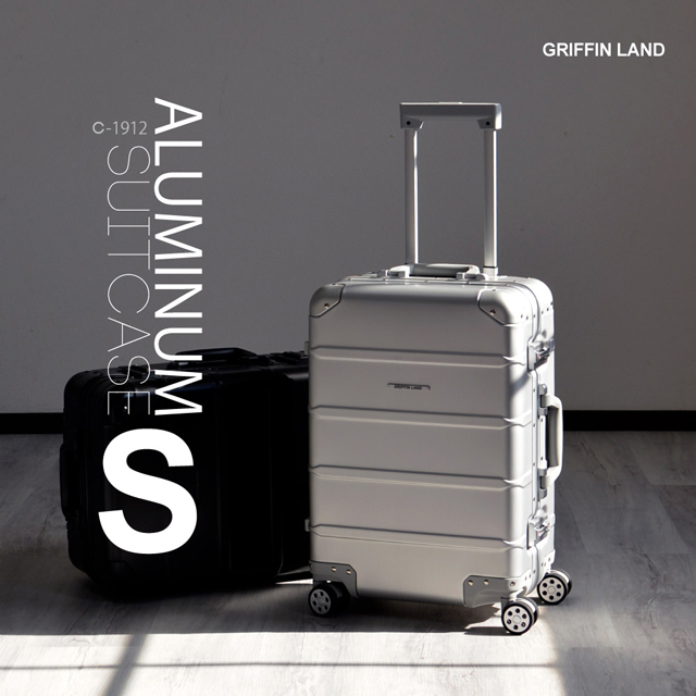 アルミ スーツケース S サイズ キャリーケース フレーム Wキャスター c-1912 小型 機内持込 機内持ち込み シルバー ブラック《グリフィンランド》