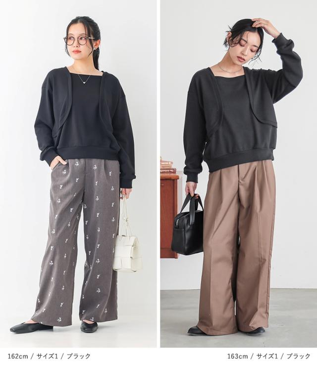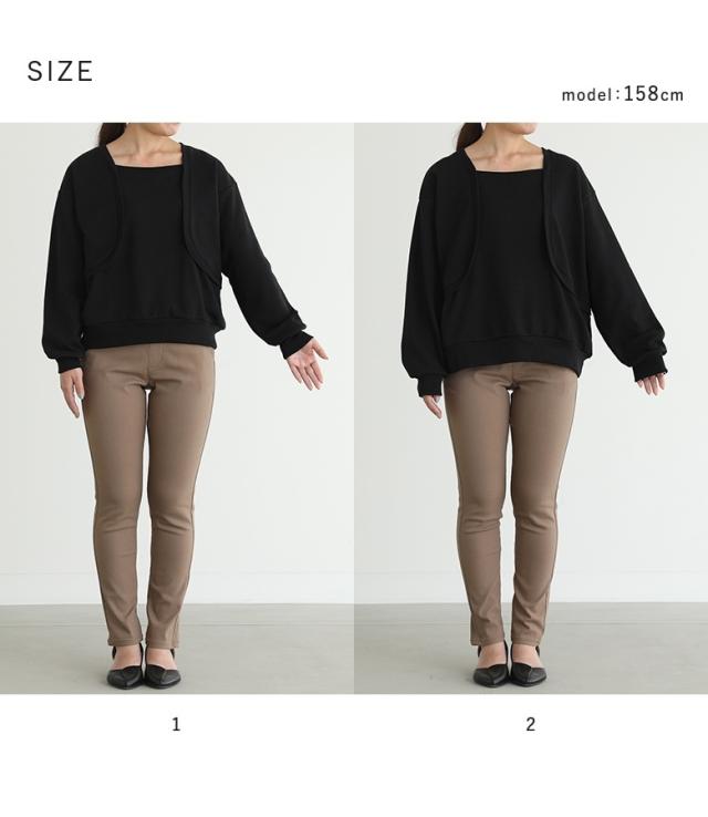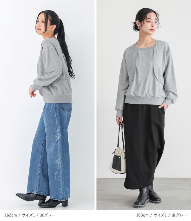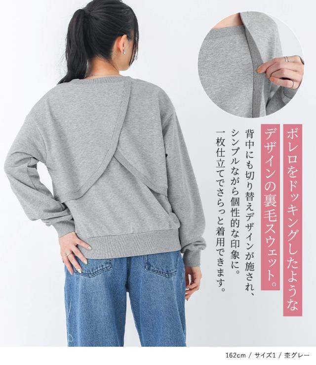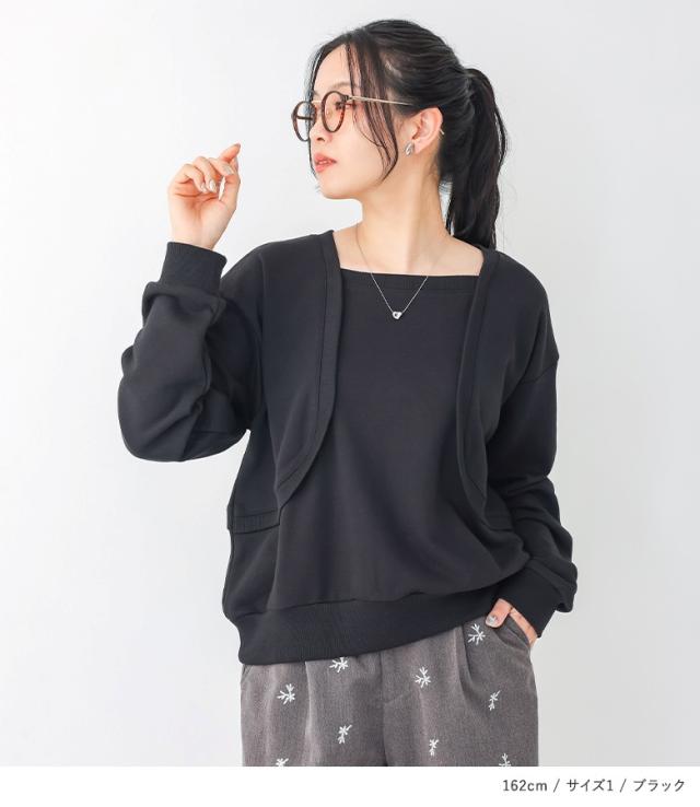 『ボレロドッキング裏毛スウェット』【メール便不可】【20】[トップス レディース スウェット 長袖 ボレロ ドッキング ラフ 裏毛 切り替え 重ね着風 レイヤード風 オシャレウォーカー]