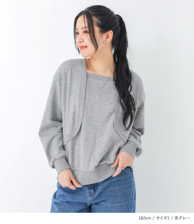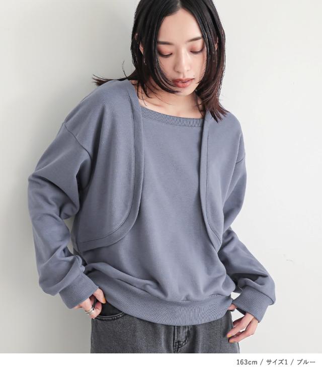 トップス レディース スウェット 長袖 ボレロ ドッキング ラフ 裏毛 切り替え 重ね着風 レイヤード風 オシャレウォーカー 【TP】 カットソー トレーナー プルオーバー n'OrLABEL ノア—ルレーベル 大人女子 大人可愛い お洒落可愛い 大人カジュアル ベーシック ニュアンス エフォートレス オフィスカジュアル ショート丈 無地 春 秋 冬 ロングシーズン Sサイズ Mサイズ Lサイズ LLサイズ 3Lサイズ XLサイズ 10代 20代 30代 40代 50代 60代 低身長 高身長 女子会 オフィス 通勤 通学 お買い物 お出掛け 旅行 リゾート レジャー アウトドア キャンプ おしゃれ お洒落 トレンド 流行 学校行事 ママ 母 母親 osharewalker ドッキングデザイン コットン混 着回し 裏毛スウェット 切り替えデザイン ブルー 青 グレー 灰色 杢グレー ブラック 黒 レイヤード 重ね着 フェイクレイヤード おうちで洗える カジュアル シンプル ナチュラル キレカジ オフィス・ビジネス ボレロドッキング[ID]11tm0pt[n'OrLABELボレロドッキング裏毛スウェット]