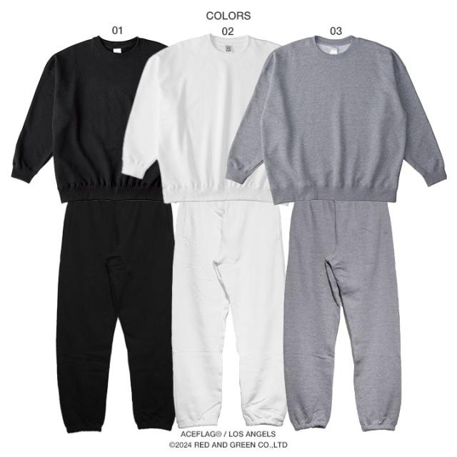 90年代当時のビッグシルエットを再現したスーパーワイドシルエットの無地トレーナーとスウェットロングパンツの上下セット。