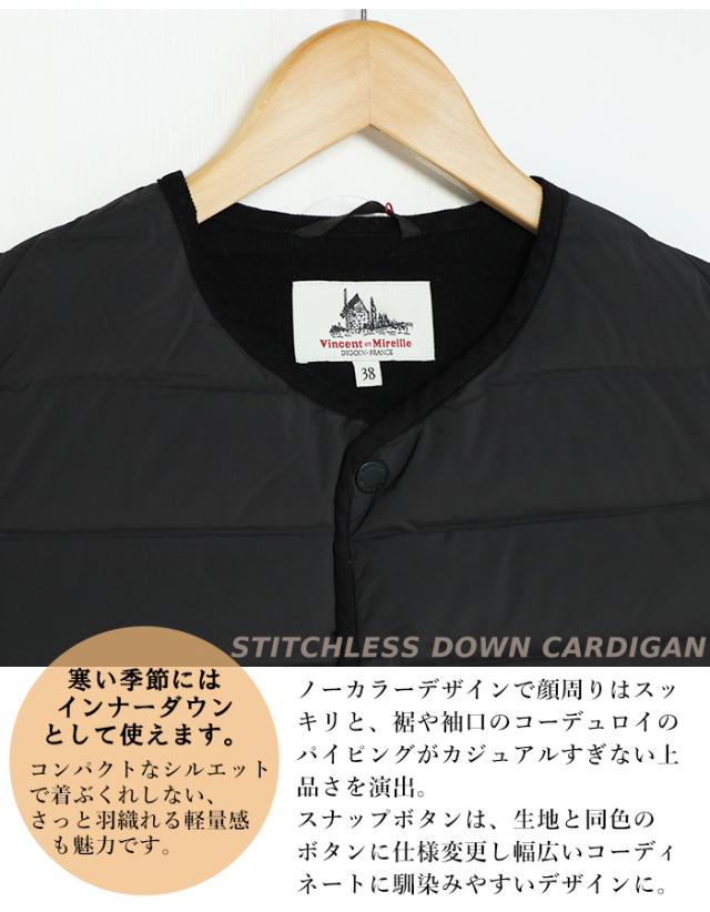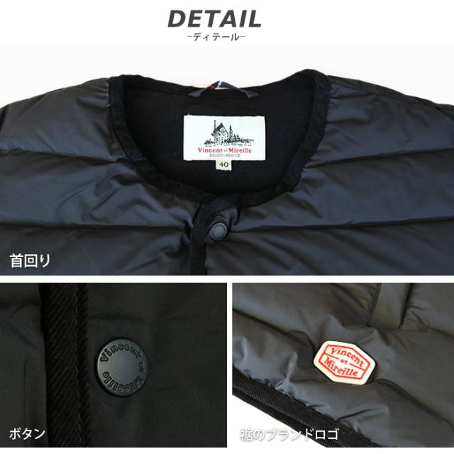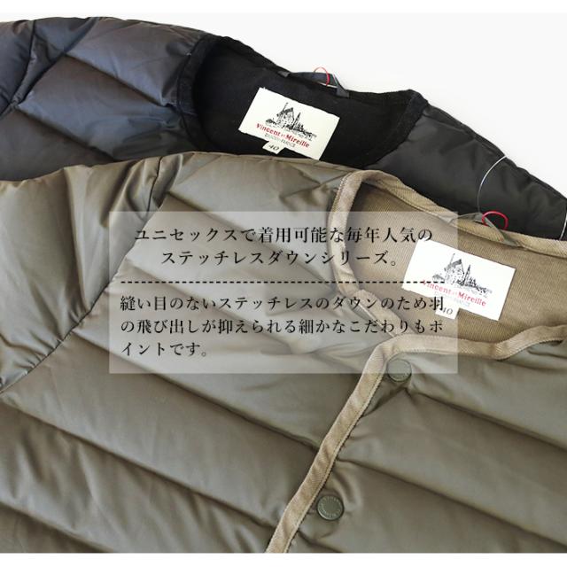 VincentetMireille ヴァンソンエミレイユ ダウンカーディガン ノーカラー インナーダウン コンパクト 軽量 軽い 男女兼用 アウター ジャケット 前開き ロゴ 定番 おしゃれ ブランド 紳士 マニッシュ メンズ 男性 大人 アメカジ きれいめ カジュアル ブランド シンプル プレゼント ブラック オリーブ 春 秋 冬 インナーダウン 羽毛 20代 30代 40代 50代 大人っぽい お洒落