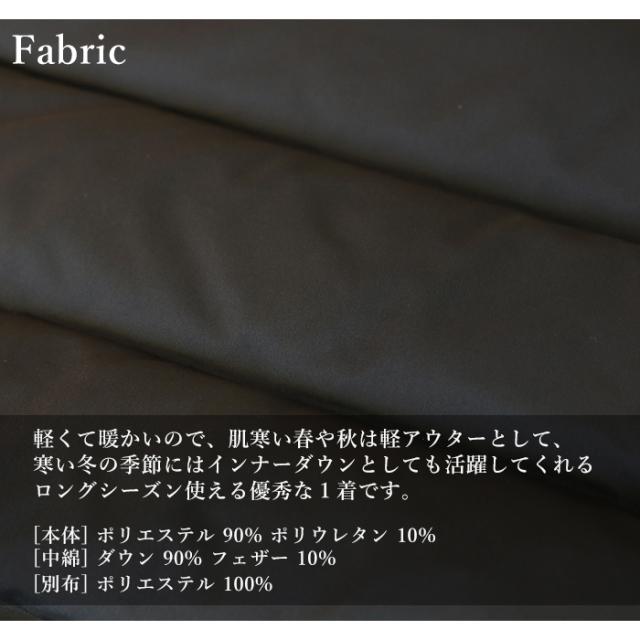 本体:ポリエステル90%、ポリウレタン10% 中わた:ダウン 90%、フェザー10% 別布:ポリエステル100% |