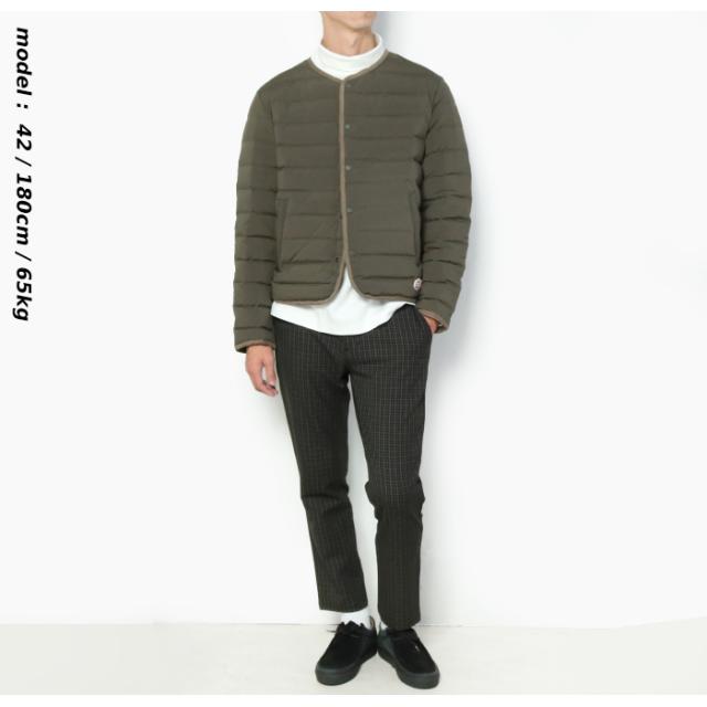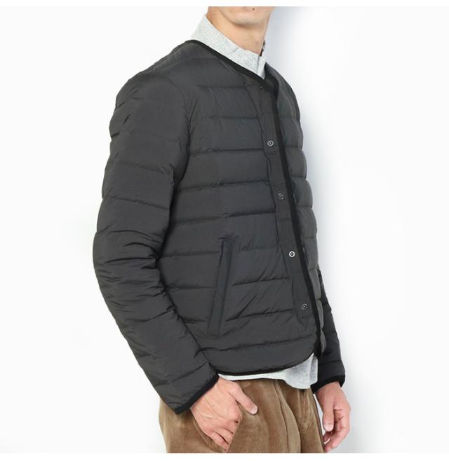 | ユニセックスで着用可能な毎年人気のステッチレスダウンシリーズ。 コンパクトなシルエットで着ぶくれしない、さっと羽織れる軽量感が魅力。 縫い目のないステッチレスのダウンのため羽の飛び出しが抑えられる細かなこだわりもポイントです。 ノーカラーデザインで顔周りはスッキリと、裾や袖口のコーデュロイのパイピングがカジュアルすぎない上品さを演出。 スナップボタンは、生地と同色のボタンに仕様変更し幅広いコーディネートに馴染みやすいデザインに。 着丈が短めなので、どんなボトムスともバランスがとれる1枚です。 軽くて暖かいので、肌寒い春や秋は軽アウターとして、 寒い冬の季節にはインナーダウンとしても活躍してくれるロングシーズン使える優秀な1着です。 |