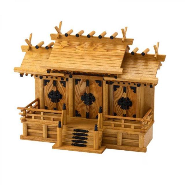 ◇静岡木工 神棚の里 屋根違い三社 けやき色(中)