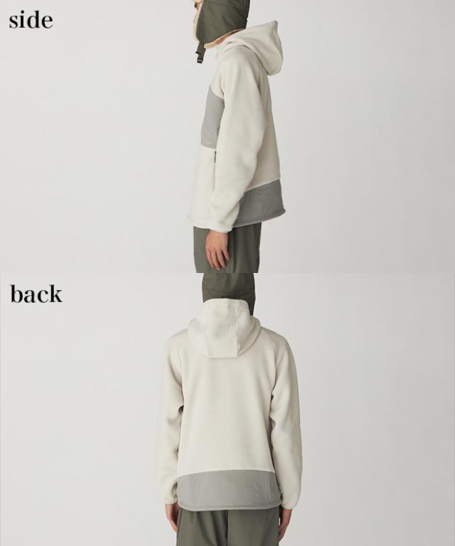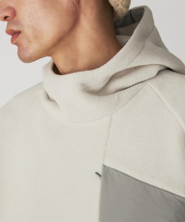 しっかりと着映えする、布帛切り替えのフリースフーディー。