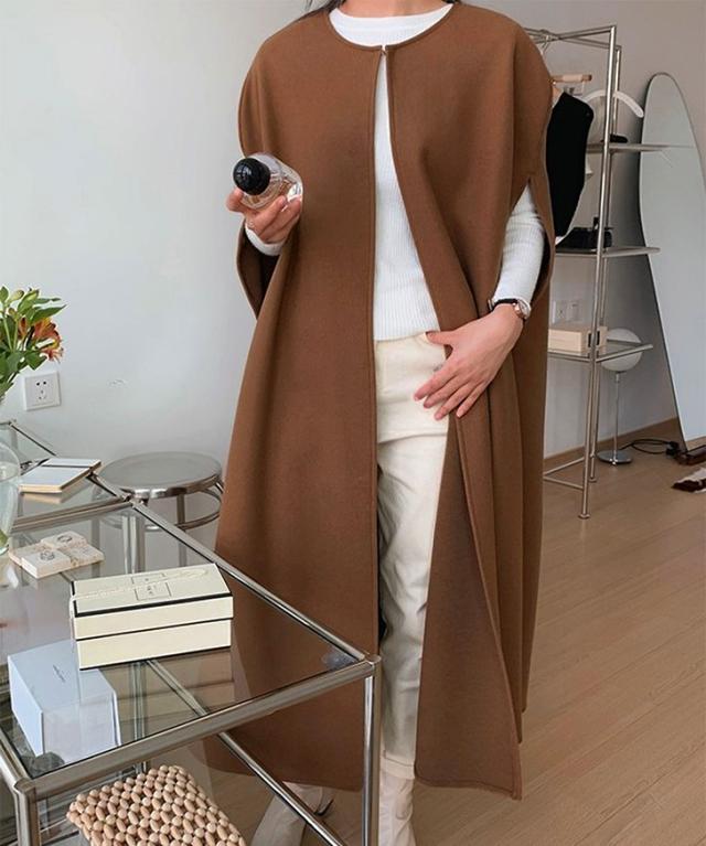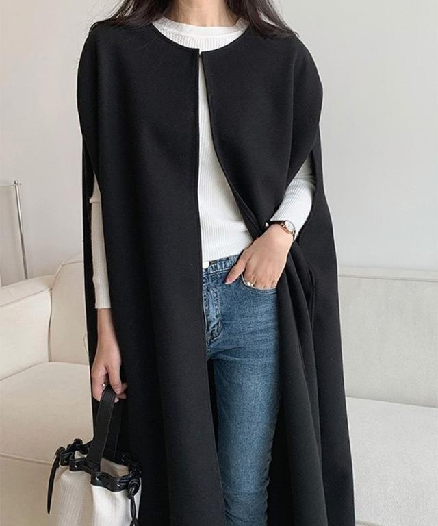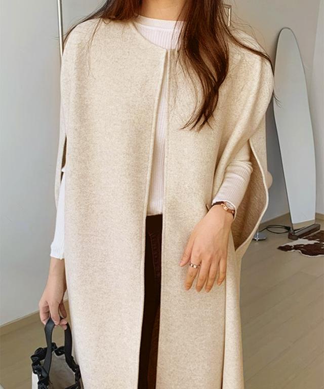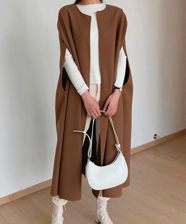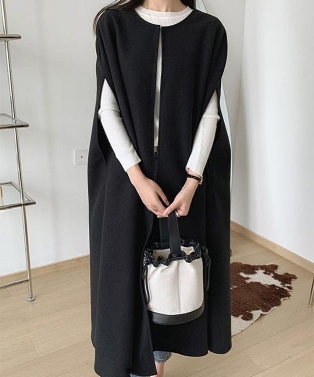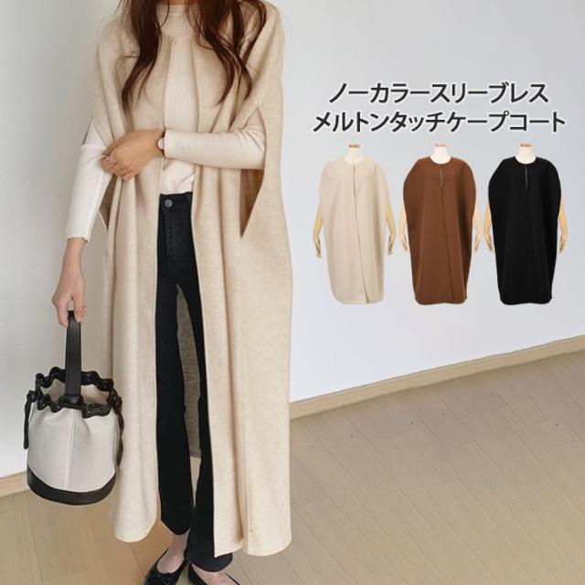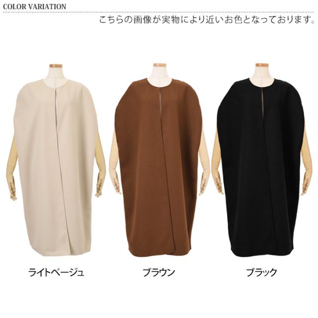 新作 ノーカラースリーブレスメルトンタッチロングケープコート レディース アウター 秋 冬 春 薄手 きれいめ 暖かい あったか 大きいサイズ 大きめ ゆったり 体型カバー ポンチョ おしゃれ 通勤 上着 羽織り