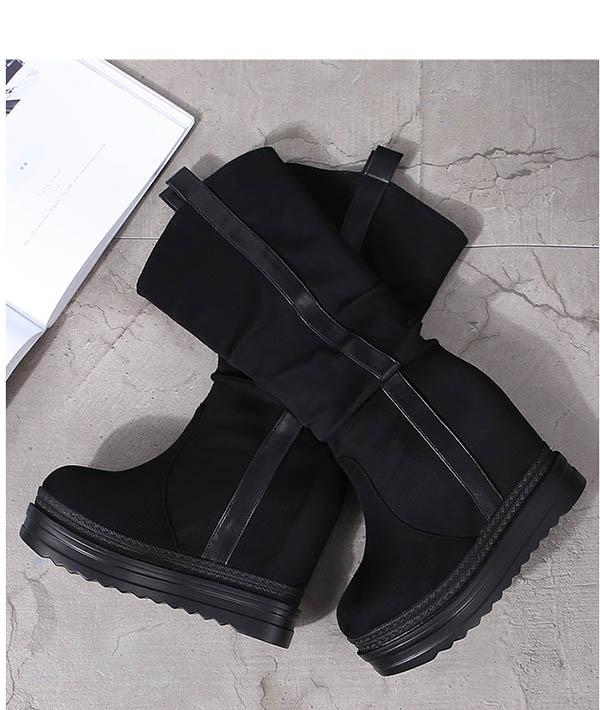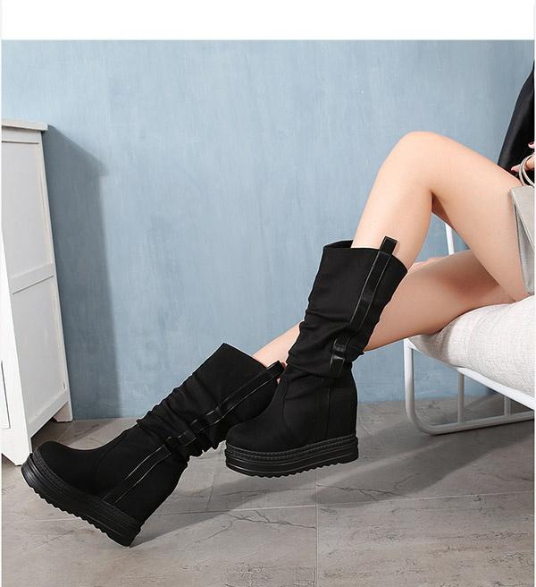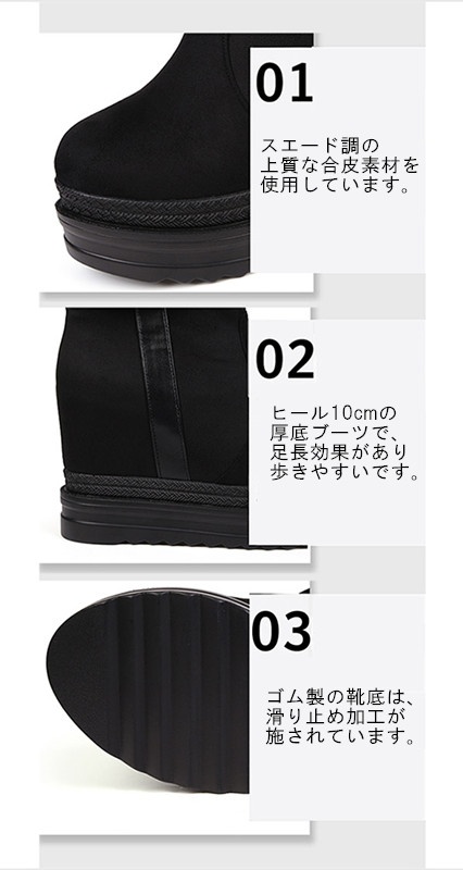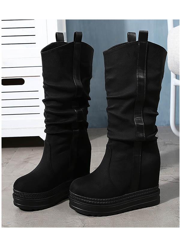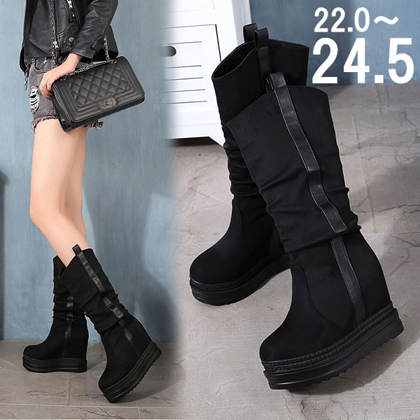 【靴下をプレゼント】ミドルブーツ 厚底 ブーツ ヒール10cm ロングブーツ くしゅくしゅブーツ ウエッジソール 美脚 カジュアル レディース ファッション シューズ 靴 秋 冬 春 20代 30代 40代 ブラック 22.0/22.5/23.0/23.5/24.0/24.5