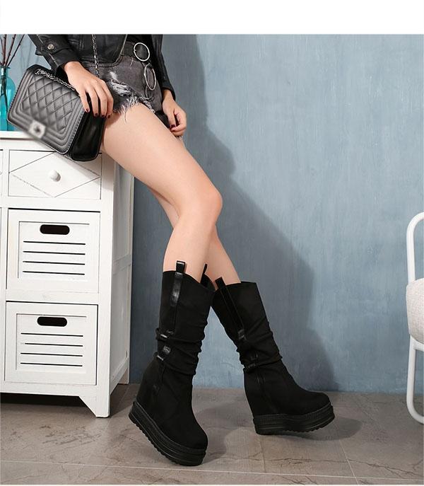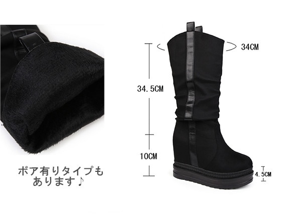 【靴下をプレゼント】ミドルブーツ 厚底 ブーツ ヒール10cm ロングブーツ くしゅくしゅブーツ ウエッジソール 美脚 カジュアル レディース ファッション シューズ 靴 秋 冬 春 20代 30代 40代 ブラック 22.0/22.5/23.0/23.5/24.0/24.5 di121t2t2m5
