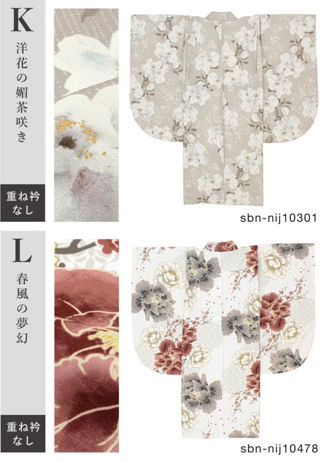 ※着物の柄部分は大きな生地を使用して作られておりますので、色や柄の出方、模様の配置等が画像と異なる場合がございます。