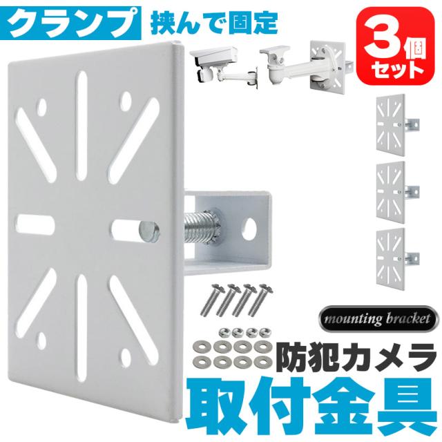 防犯カメラ 取付金具 ブラケット 3個セット クランプ スタンド ハウジング 穴開け不要 挟み込み 監視カメラ ダミーカメラ ソーラーライト 屋内 屋外 設置 鋼鉄 すぐ使える ホワイト カメラ取付ネジ付き ベランダ 扉 板 鉄骨 架台