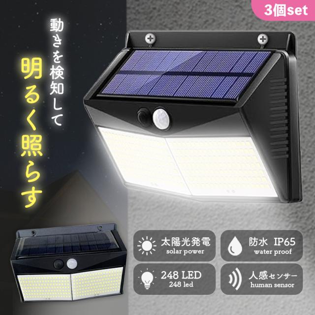 センサーソーラーライト 3個セット ソーラーライト センサーライト 248LED 分離型 防犯 屋外 ソーラーパネル ソーラー 防水 セキュリティ 壁付け 人感センサー 防犯ライト ガーデンライト アウトドア ソーラーフラッドライト モーションセンサー セキュリティライト モード