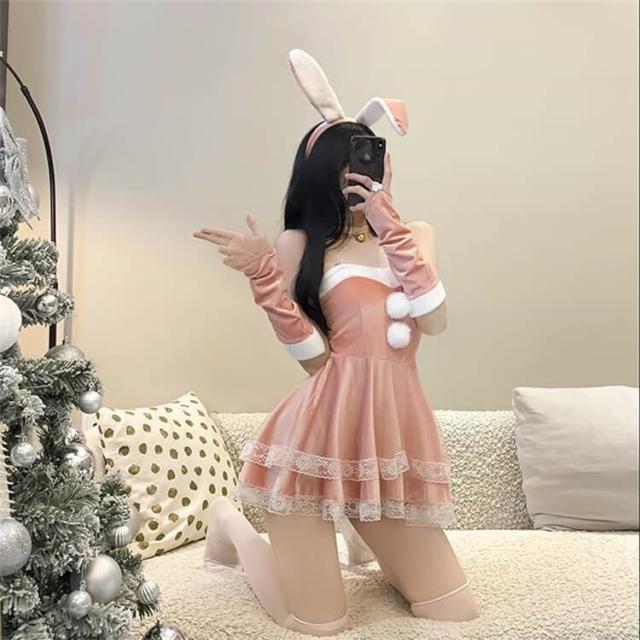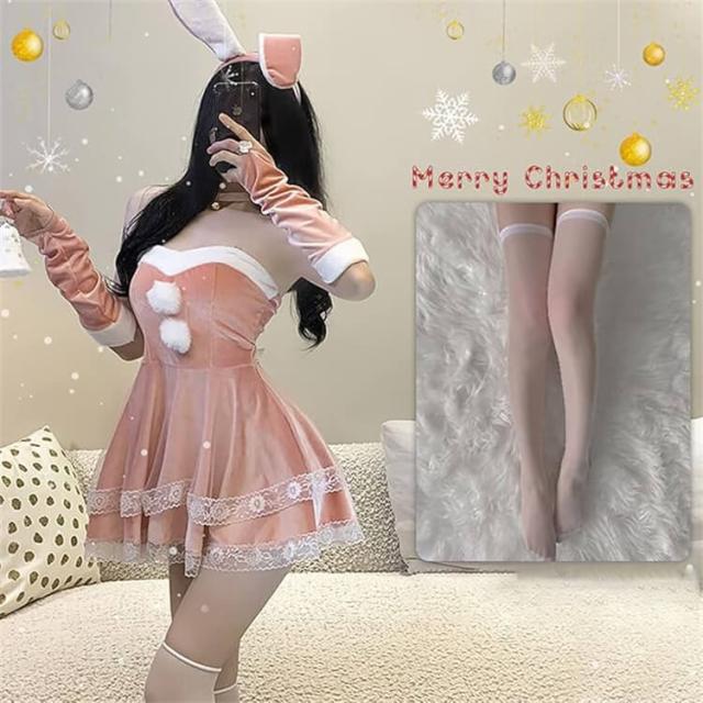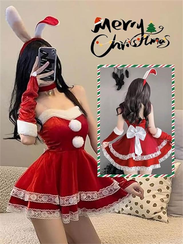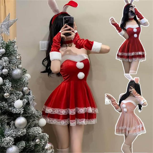 【可愛さマシマシ】:ふわふわしたファーのウサギ耳カチューシャは可愛らしさをプラスし、サンタミニスカの後ろにビッグサイズの蝶結びで飾り、デザイン感がたっぷりです〜兎耳カチューシャとミニスカを合わせて可愛いサンタ風バニーガールに変身できるでしょう。