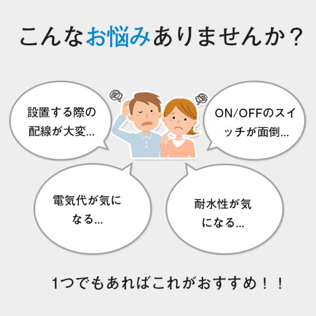 - 家の駐車スペースには専用の照明がなく夜間の車入れはストレスを感じていましたが人感センサーは車にも反応するのでストレスフリーとなりました。ありがとう!