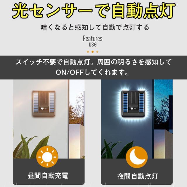センサーライト 屋外 led ソーラーライト ウォールライト 人感 防水 簡単貼り付け 充電式 壁掛け 防犯灯 屋外照明 明暗センサー