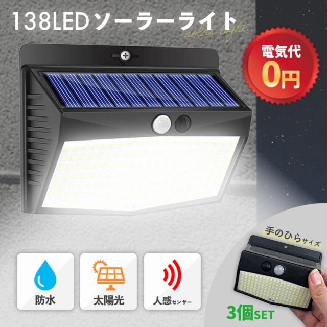 センサーソーラーライト 3個セット ソーラーライト センサーライト 138LED 分離型 防犯 屋外 ソーラーパネル ソーラー 防水 セキュリティ 壁付け 人感センサー 防犯ライト ガーデンライト アウトドア ソーラーフラッドライト モーションセンサー セキュリティライト モード