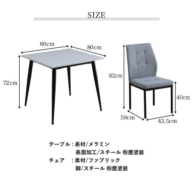 | テーブル:80×80×72cm チェア:43.5×59×82cm |