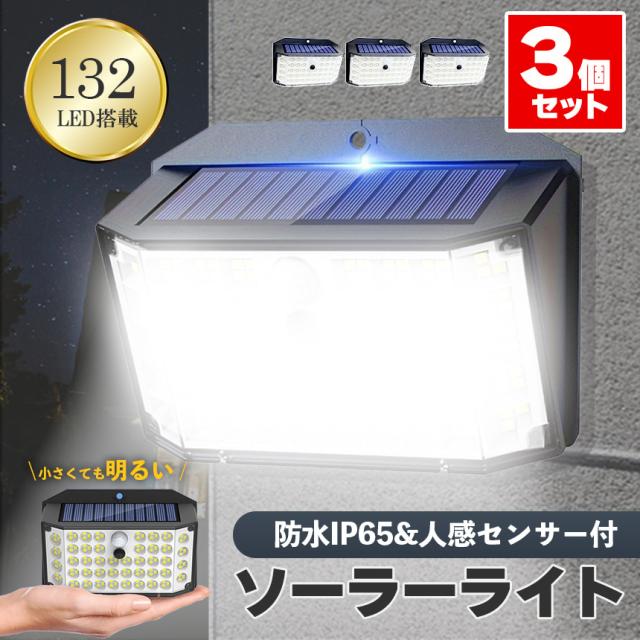 センサーソーラーライト 3個セット ソーラーライト センサーライト 132LED 分離型 防犯 屋外 ソーラーパネル ソーラー 防水 セキュリティ 壁付け 人感センサー 防犯ライト ガーデンライト アウトドア ソーラーフラッドライト モーションセンサー セキュリティライト モード