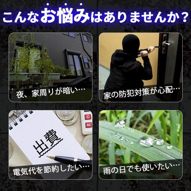 こんなお悩みはありませんか?・夜、家周りが暗い…・家の防犯対策が心配…・電気代を節約したい…・雨の日でも使いたい…そんな時に!132LEDソーラーライトがおすすめです!