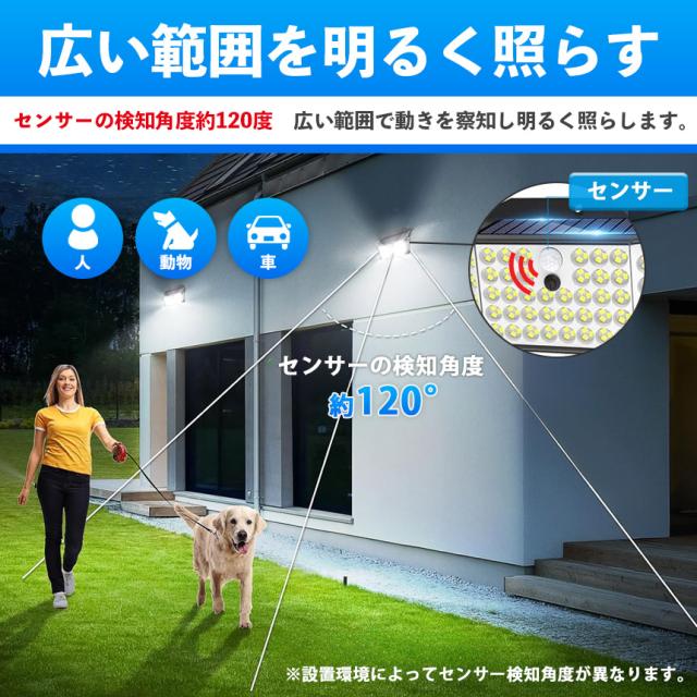 センサーの検知角度約180度なので広い範囲で人、動物、車などの