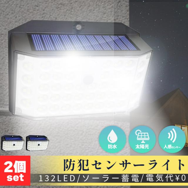 センサーソーラーライト 2個セット ソーラーライト センサーライト 132LED 分離型 防犯 屋外 ソーラーパネル ソーラー 防水 セキュリティ 壁付け 人感センサー 防犯ライト ガーデンライト アウトドア ソーラーフラッドライト モーションセンサー セキュリティライト モード