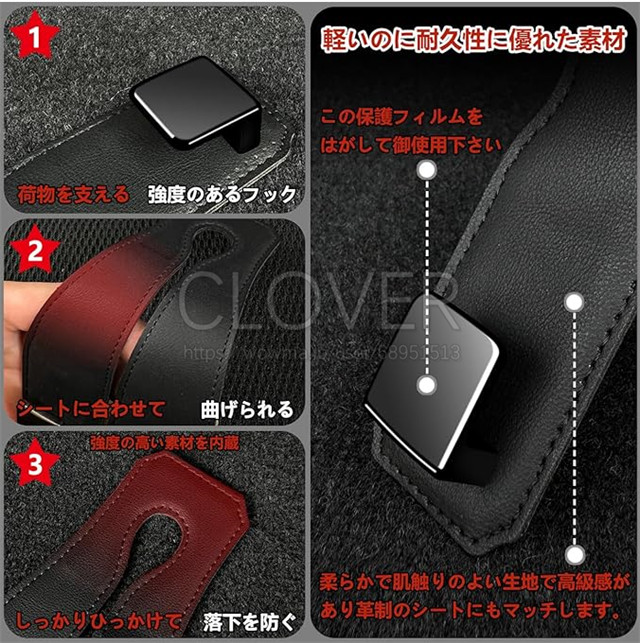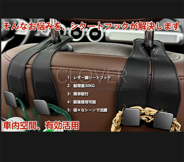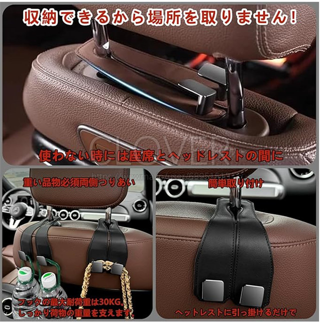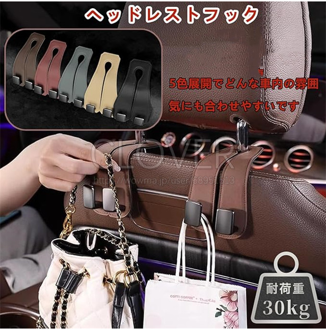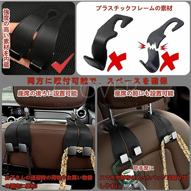 ヘッドレストフック 車用シートフック 荷物かけ レザー金属製 荷掛けフック 便利グッズ カー用品フック シートの前面/後面