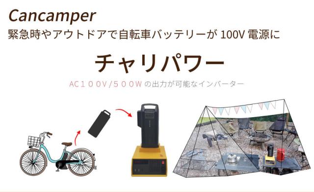 Cancamper キャンキャンパー インバーター 電動アシスト自転車用バッテリー 変換器 キャンプ アウトドア 防災 チャリパワー ivt2499 ポータブル電源