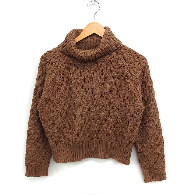 【中古】マジェスティックレゴン MAJESTIC LEGON タートルネック ニット セーター 長袖 ダイヤ柄編み M ブラウン 茶