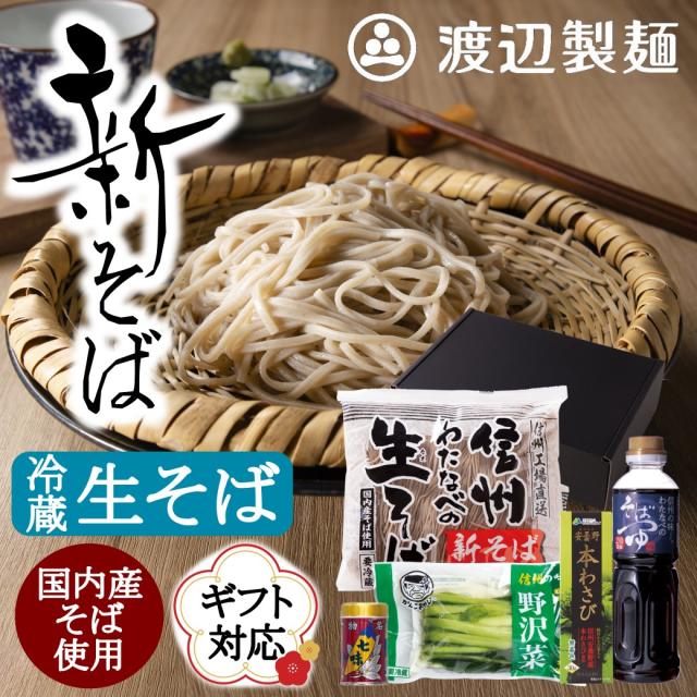 そば 蕎麦 年越しそば ギフト 信州そば 蕎麦 信州田舎新そば野沢菜セット 生そば つゆ付き 安曇野産わさび 八幡屋磯五郎七味