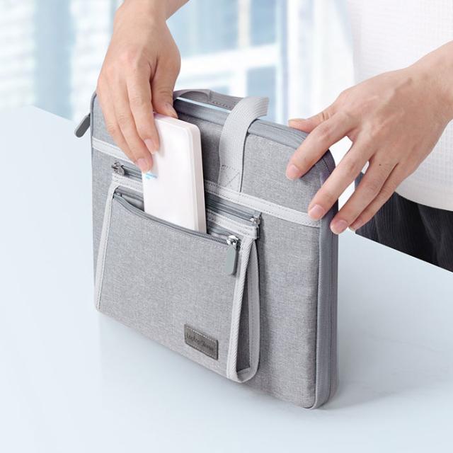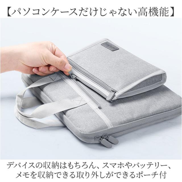 | 商品説明 | 【取り外しできるポーチ付き☆】 ・ケースに入れたまま作業ができる!「パソコンケース ノートパソコンバッグ」が登場。 【パソコンケースだけじゃない高機能】 ・デバイスの収納はもちろん、スマホやバッテリー、メモを収納できる取り外しができるポーチ付 【端末を優しく持ち運び◎】 ・衝撃を吸収する、クッション性のある生地。持ち運びも安心のふっくら仕様。 【ケースにINしたまま作業OK☆】 ・使いたいときにサッと使える!リモートワークや出先でもすぐにお仕事ができるのがポイント! 【デバイスの熱逃がしも◎】 ・ケース内にはメッシュの熱逃しゾーンを配置。ケースをつけたままでの使用も安心。 【旅行や出張も快適に♪】 ・スーツケースに取り付けられる、キャリーオンベルトつき!旅行も出張でもお役立ち☆ 【開きやすいダブルファスナー!】 ・効率よく出し入れができる、ダブルファスナー仕様。使いやすさに配慮した機能的ケース。 |