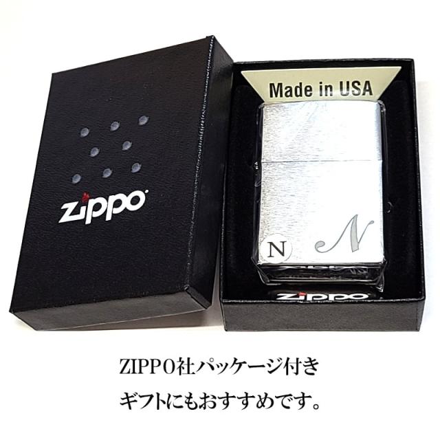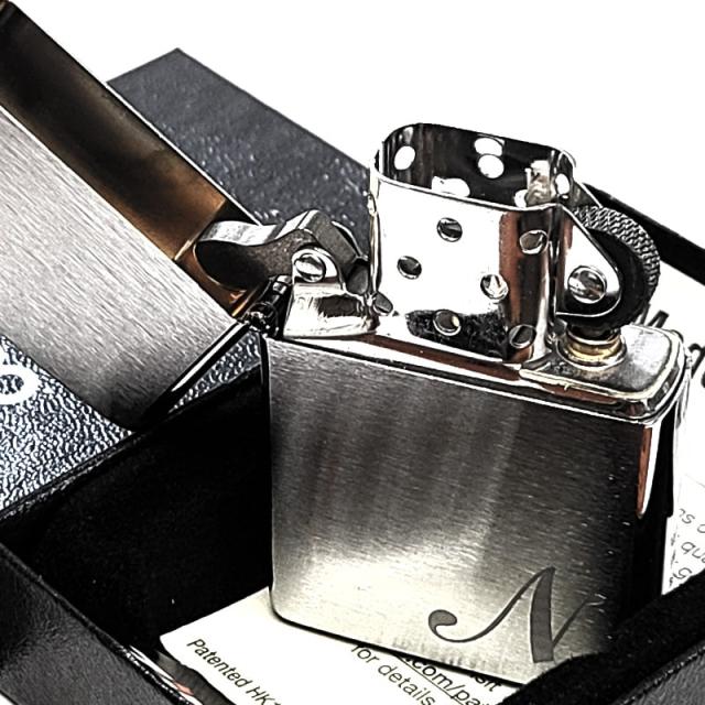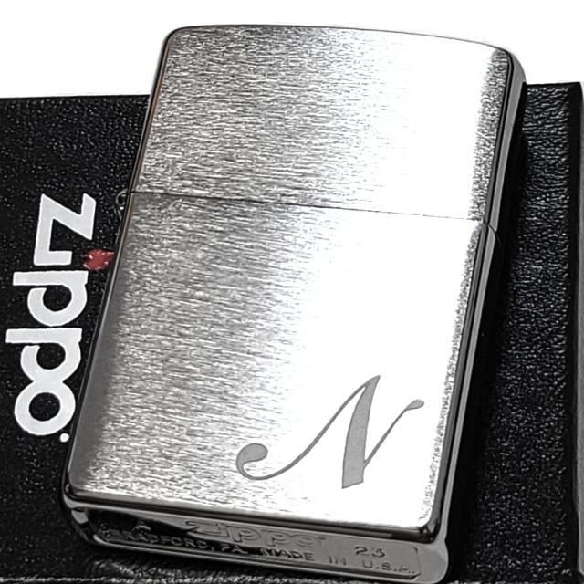 ZIPPO イニシャル N ライター レーザー彫刻 サテンシルバー ジッポ シンプル メンズ おしゃれ レディース ギフト プレゼント