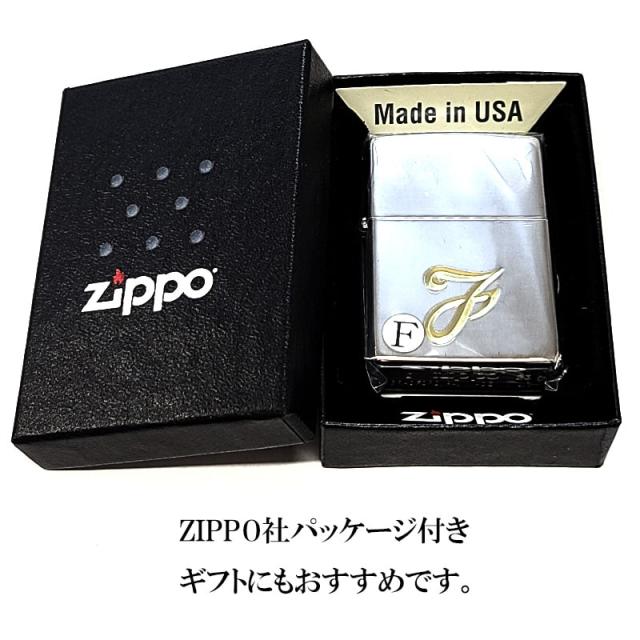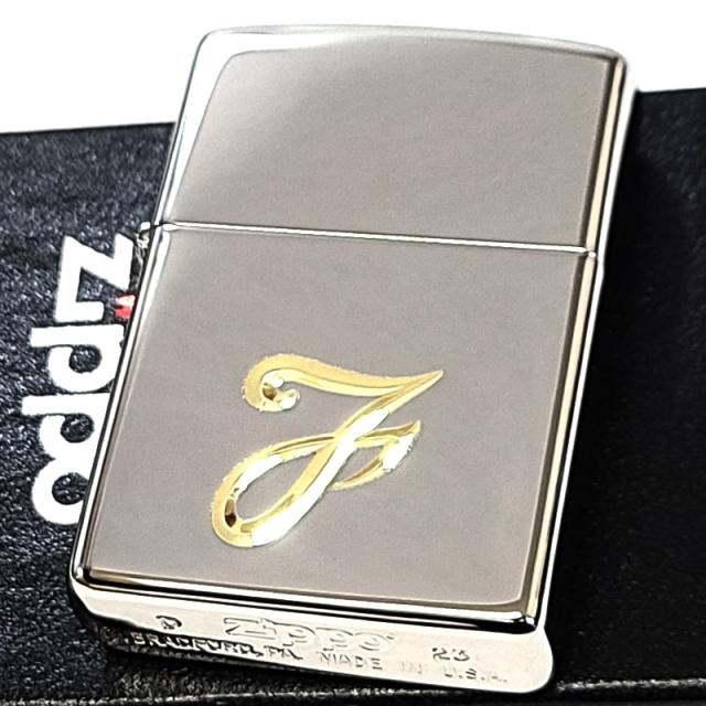 ZIPPO ライター イニシャル F ジッポ 鏡面シルバー V刃彫刻 シンプル 金差し メンズ 銀 おしゃれ レディース ギフト プレゼント