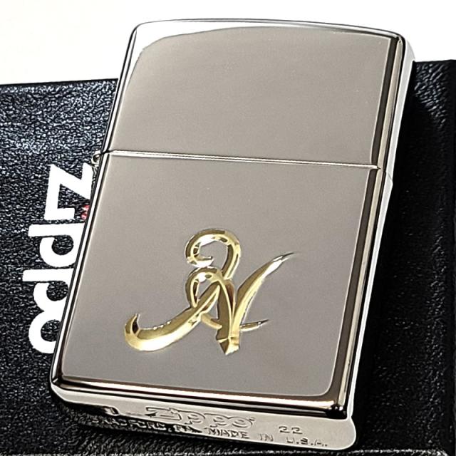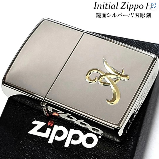 ZIPPOライター イニシャル H ジッポ シンプル かっこいい 鏡面シルバー V刃彫刻 金差し メンズ 銀 おしゃれ レディース ギフト