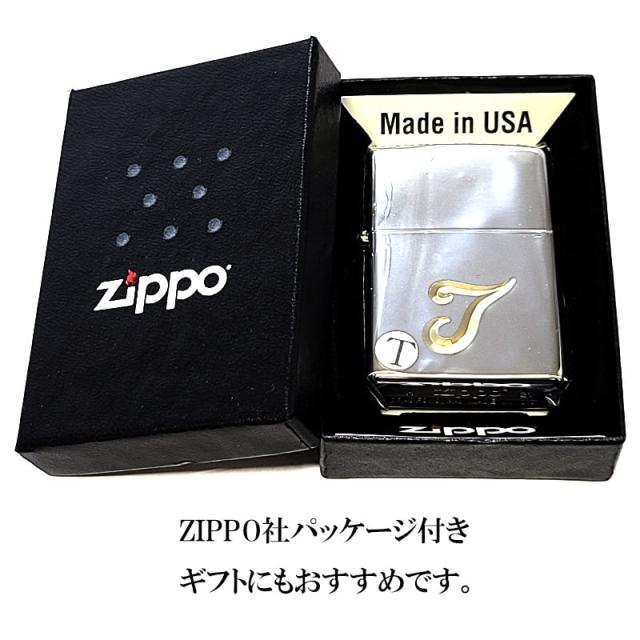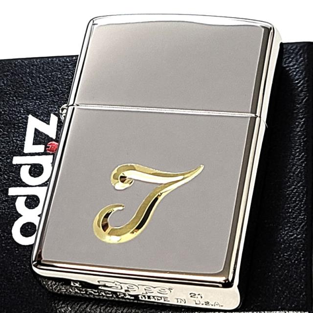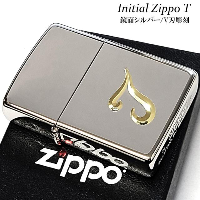 ジッポ ライター イニシャル T ZIPPO シンプル 鏡面シルバー V刃彫刻 金差し メンズ 銀 おしゃれ レディース ギフト プレゼント